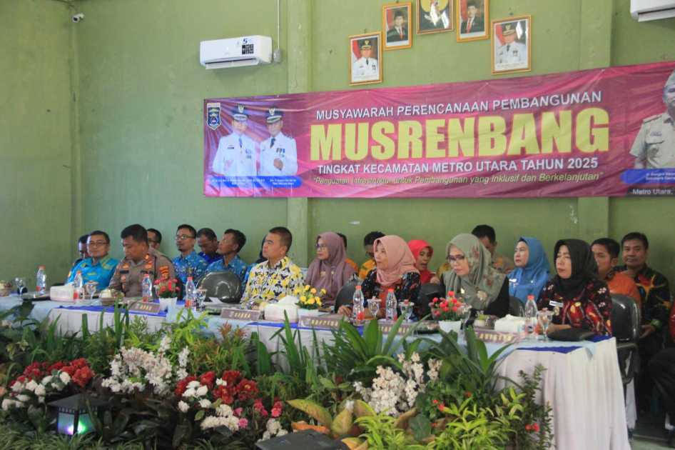 Kecamatan Metro Utara, Kota Metro menggelar kegiatan Musyawarah Rencana Pembangunan (Musrenbang) dengan mengusung tema Pembangunan yang Inklusif dan Berkelanjutan, acara berjalan lancar dengan tingkat partisipasi aktif yang tinggi, digelar di aula Kecamatan Metro Utara, Kamis (13/02/2025).