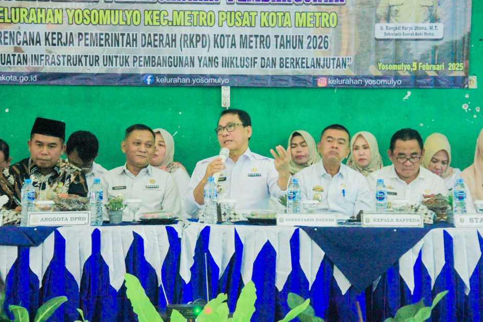Pemerintah Kota Metro kembali menggelar Musyawarah Perencanaan Pembangunan (Musrenbang) kali ini oleh Kelurahan Yosomulyo, Rabu (05/02/2025) bertempat di aula setempat.