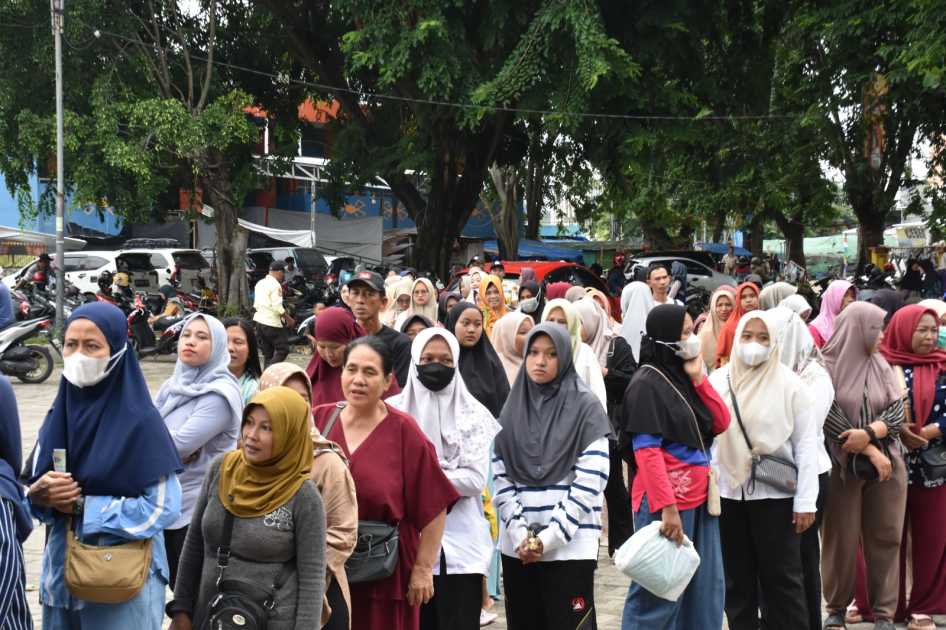 Kegiatan ini berlangsung di Halaman Pasar Cendrawasih pada Rabu (26/02/2025) dan disambut antusias oleh warga yang rela mengantre untuk mendapatkan bahan pokok dengan harga lebih murah.